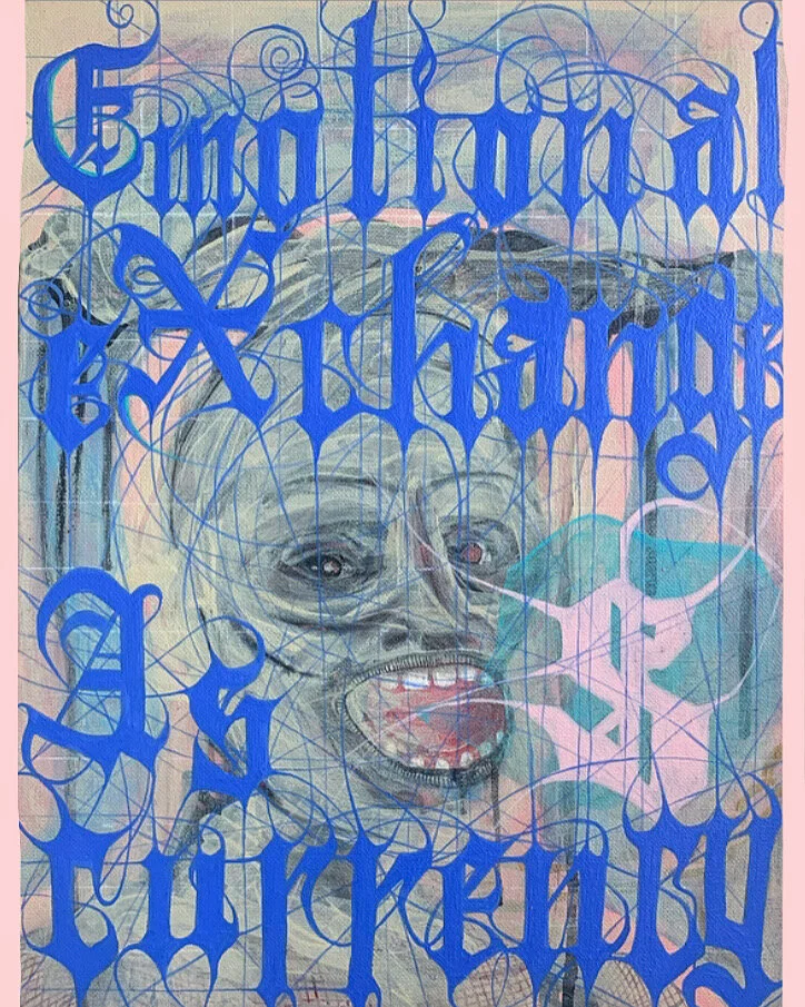 Emotional Exchange, acrylic and graphite on canvas board, 41 x 30 cm, 2020 (Covid Experiments)
