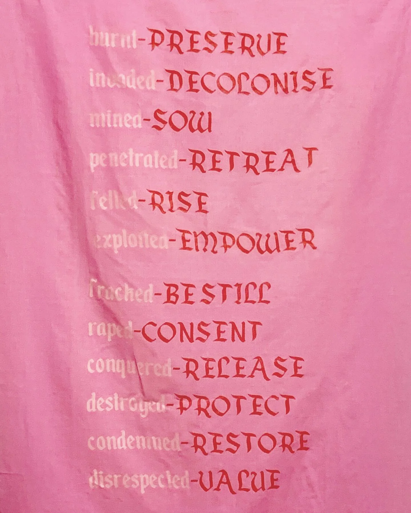 The Landscape of Each other, screen print on cotton, dimensions varied, 2019 (exhibited as part of A Little More Suffering, FELT space, SA)