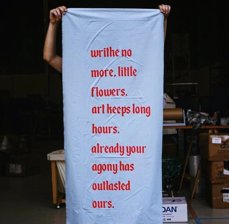 Writhe No More, screen print on cotton, dimensions varied, 2020 (exhibited as part of A Little More Suffering, FELT space, SA)
